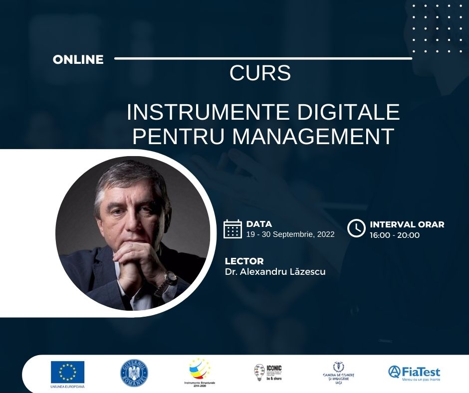 Înscrie-te GRATUIT la cursul Instrumente Digitale pentru Management și învață să conduci o companie utilizând cele mai noi tehnologii